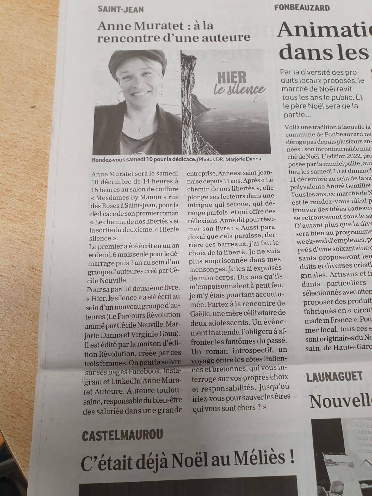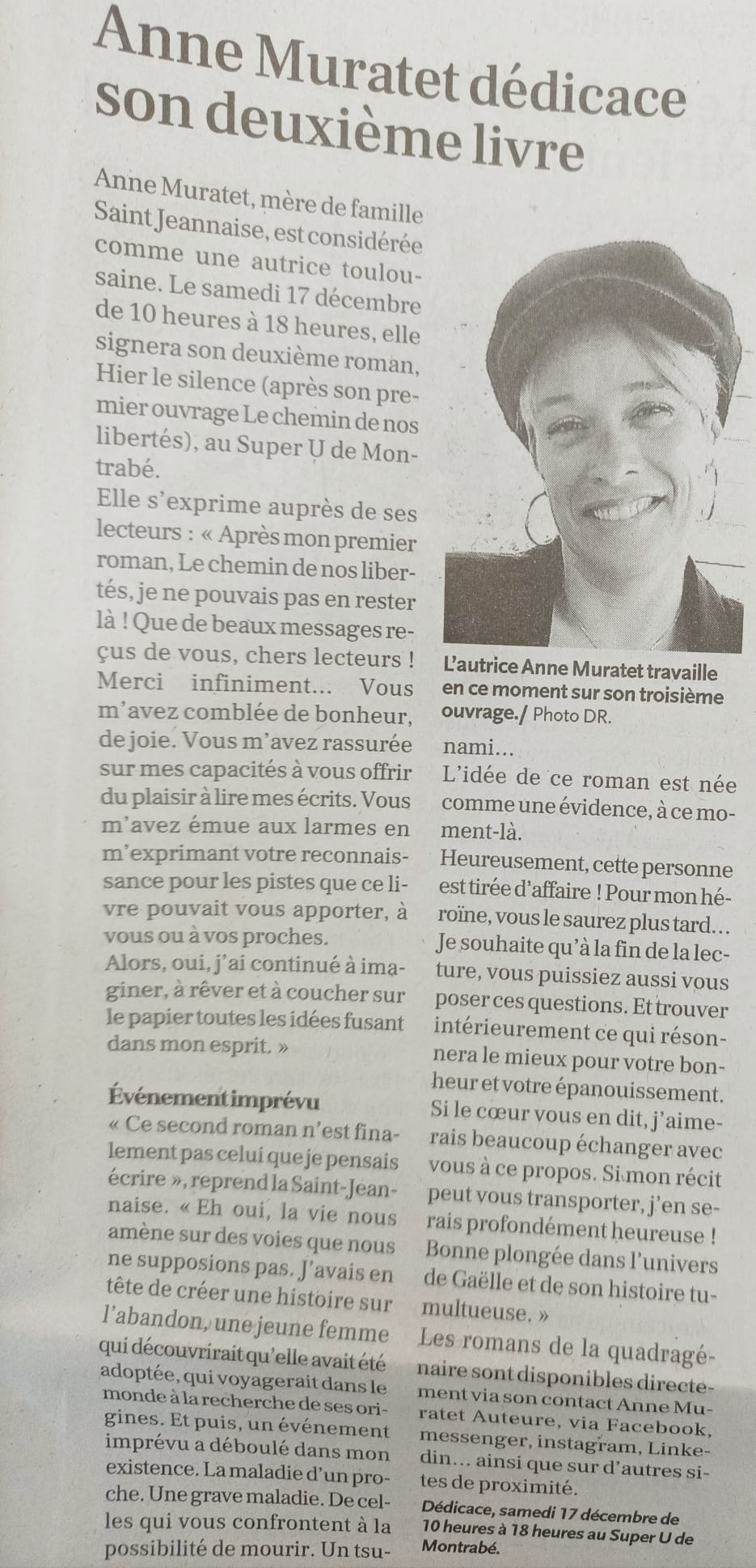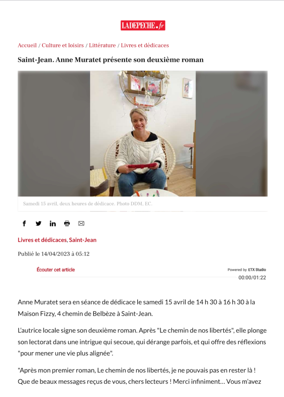 Article LA DEPECHE - Anne Muratet : à la rencontre d’une auteure